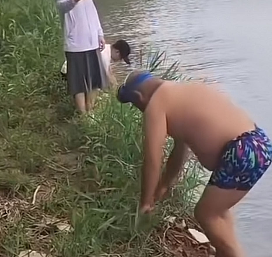 钓鱼> 潜到水底,手向前平推,碰着底层鱼轻轻一拍,鱼就进泥里了,直接抓起来。水里都不用睁眼,盲抓